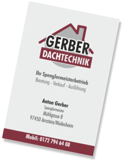 Mail:   mail@dachtechnik-gerber.de Mobil: 0172 794 64 08 www.Dachtechnik-Gerber.de